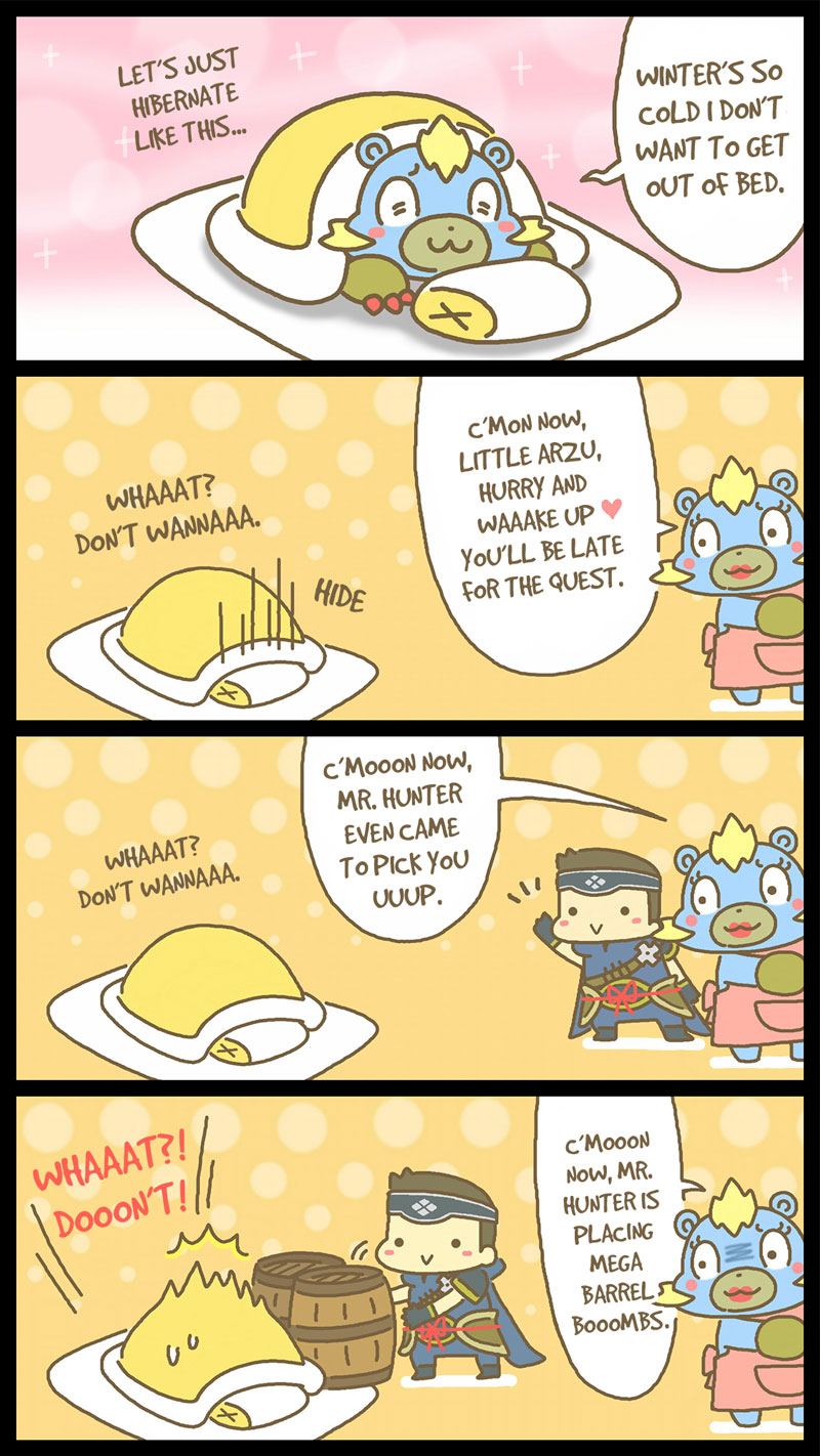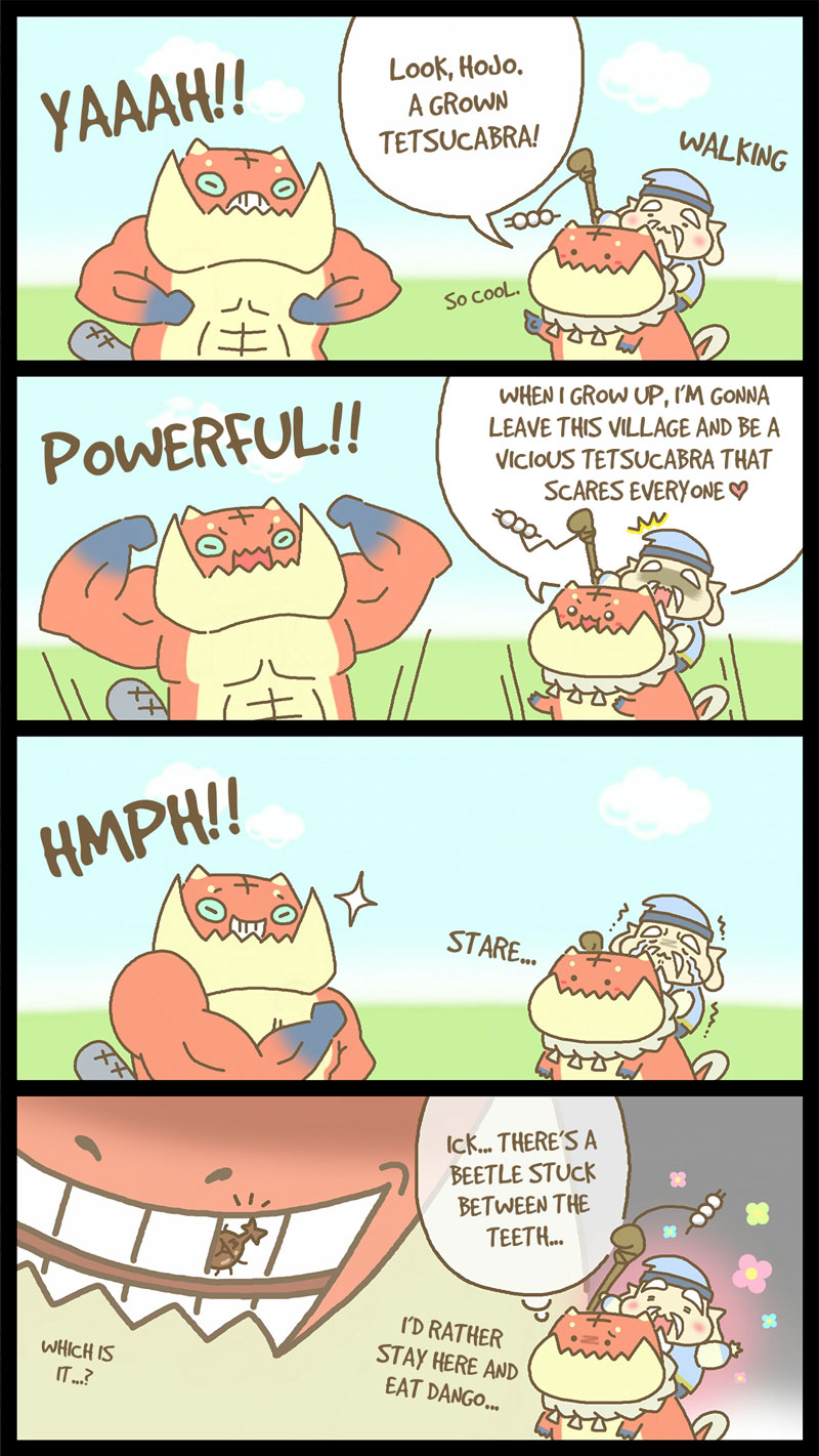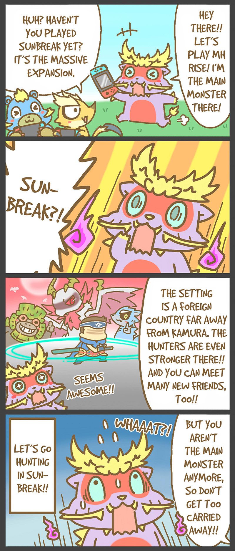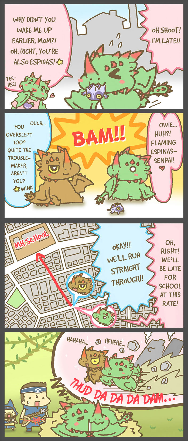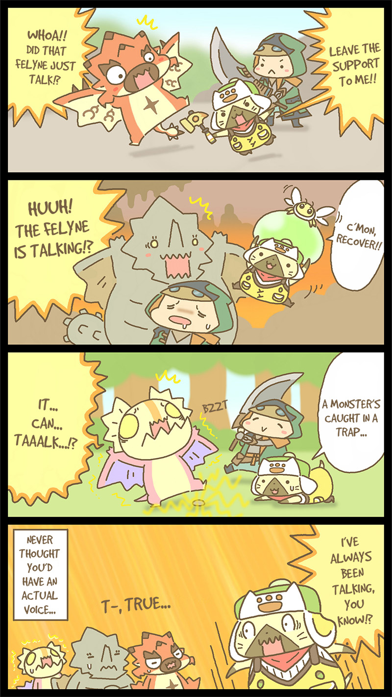 Well, check out her new comic ”Monster Hunter Friends ☆”, now serializing on the official MH Fanclub in Japan, “Monhun-bu”, and officially translated here at Monster Hunter Asia!