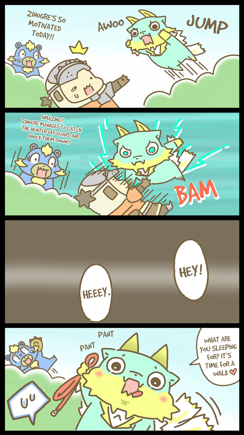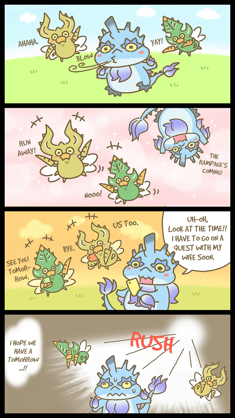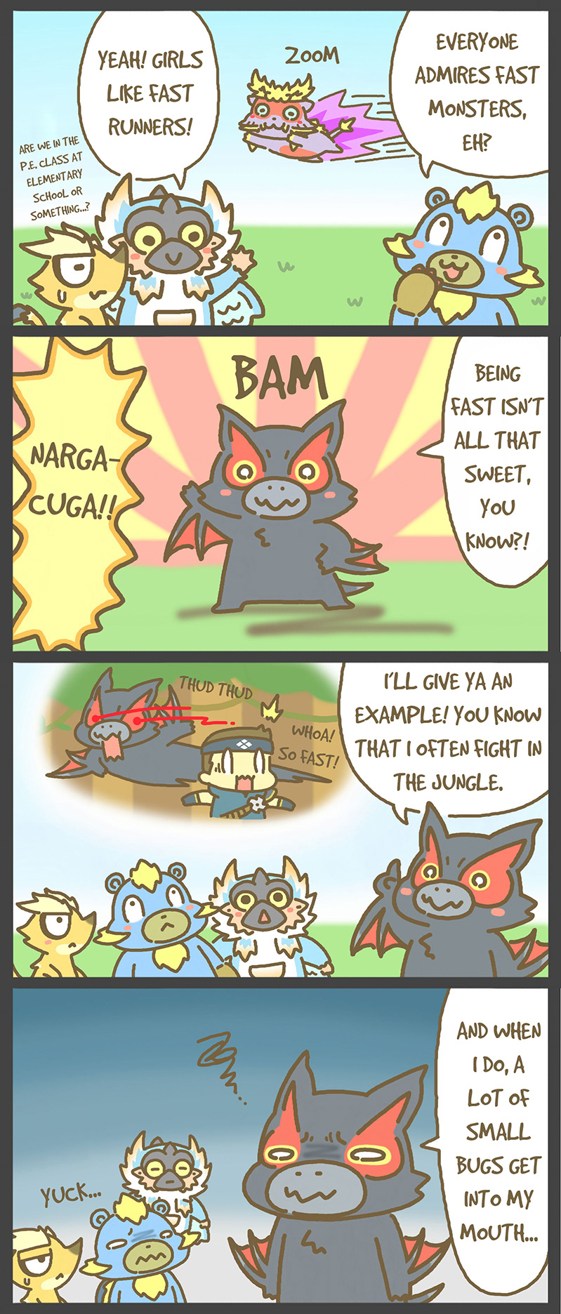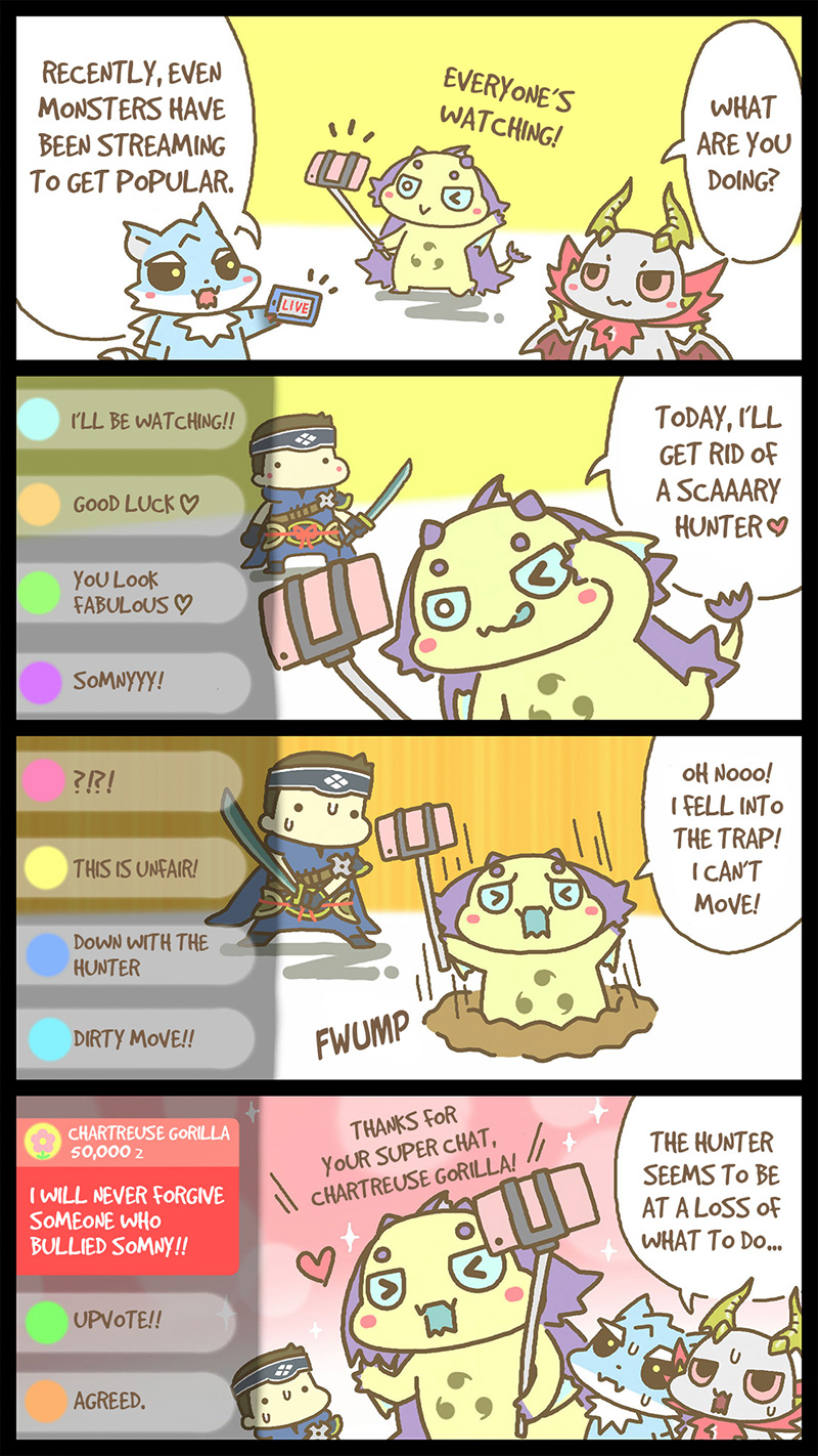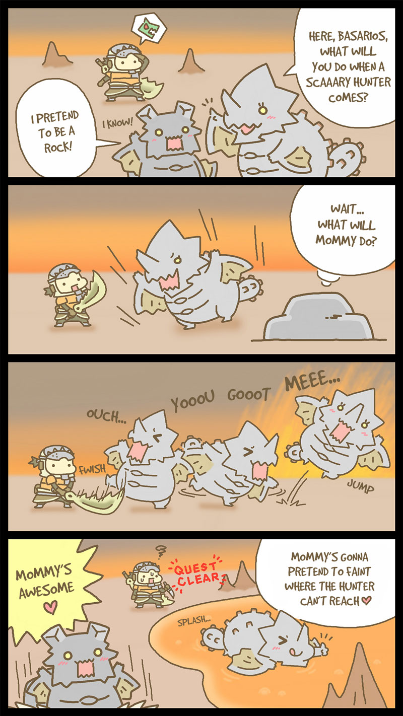 Well, check out her new comic ”Monster Hunter Friends ☆”, now serializing on the official MH Fanclub in Japan, “Monhun-bu”, and officially translated here at Monster Hunter Asia!