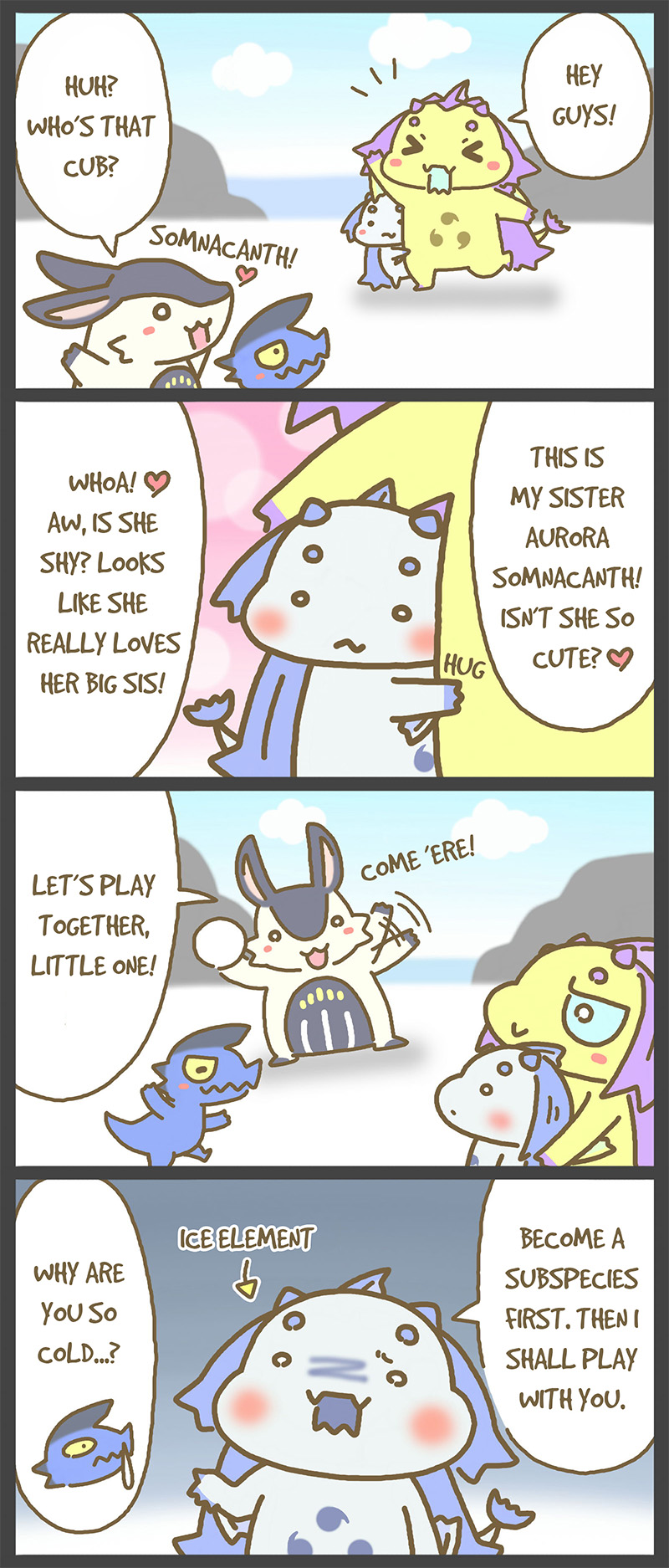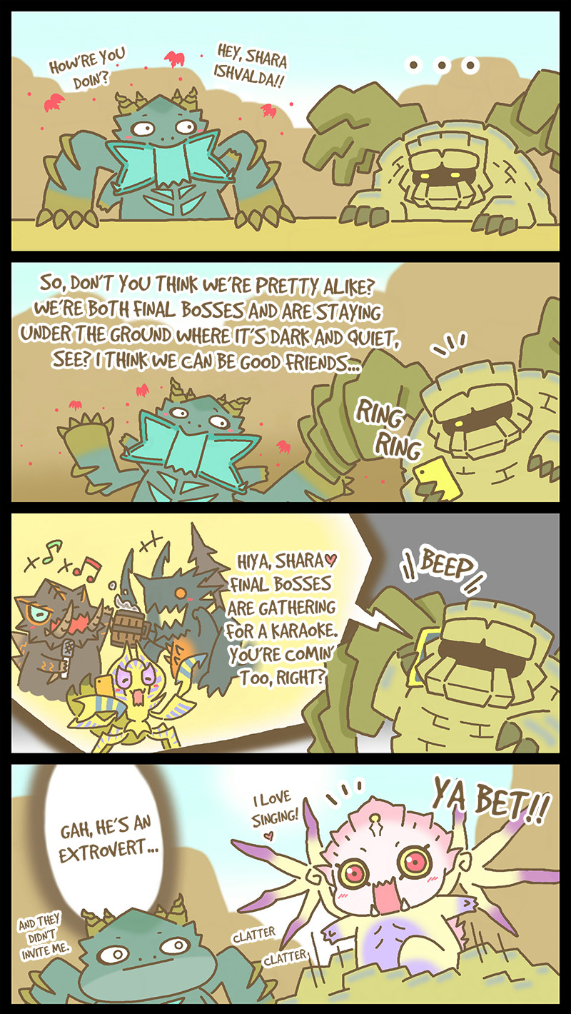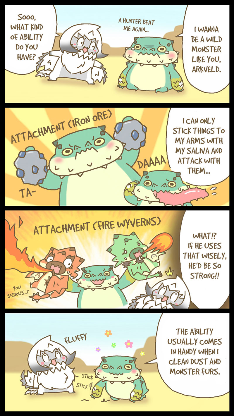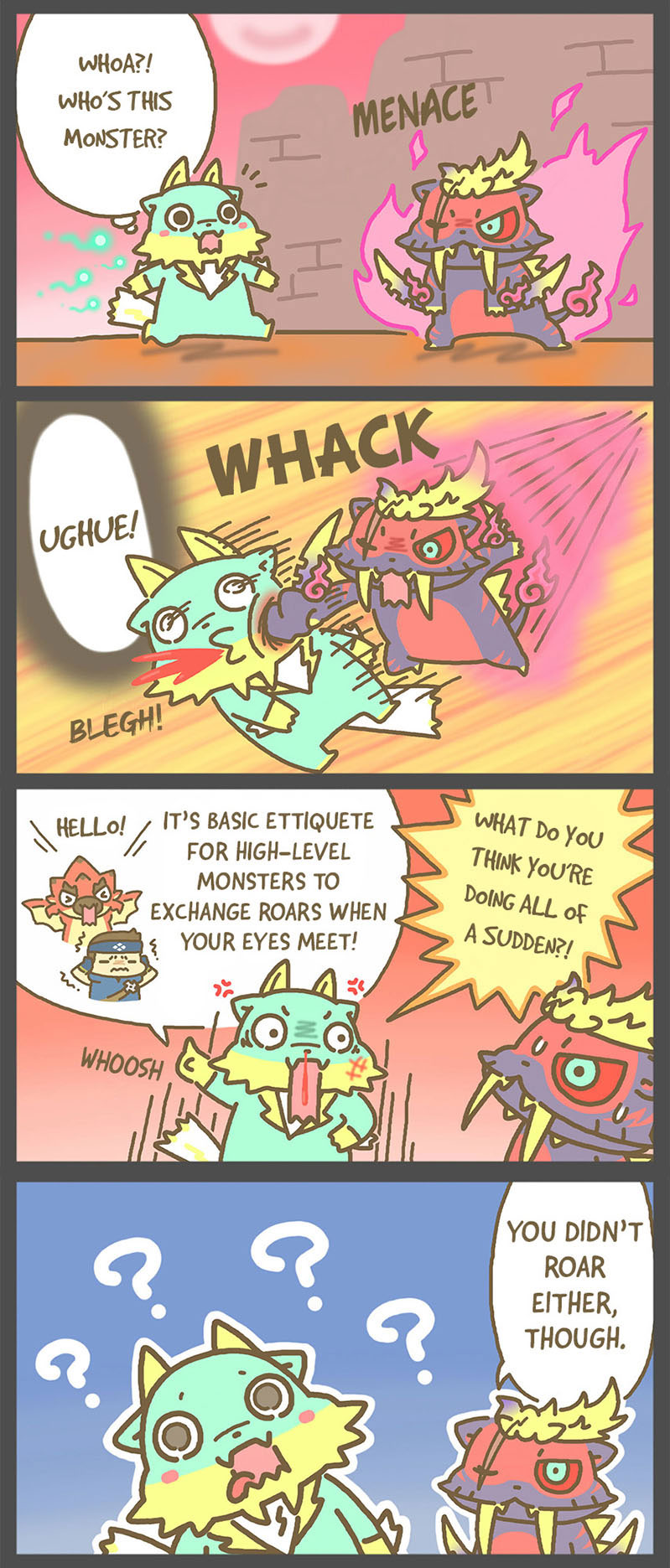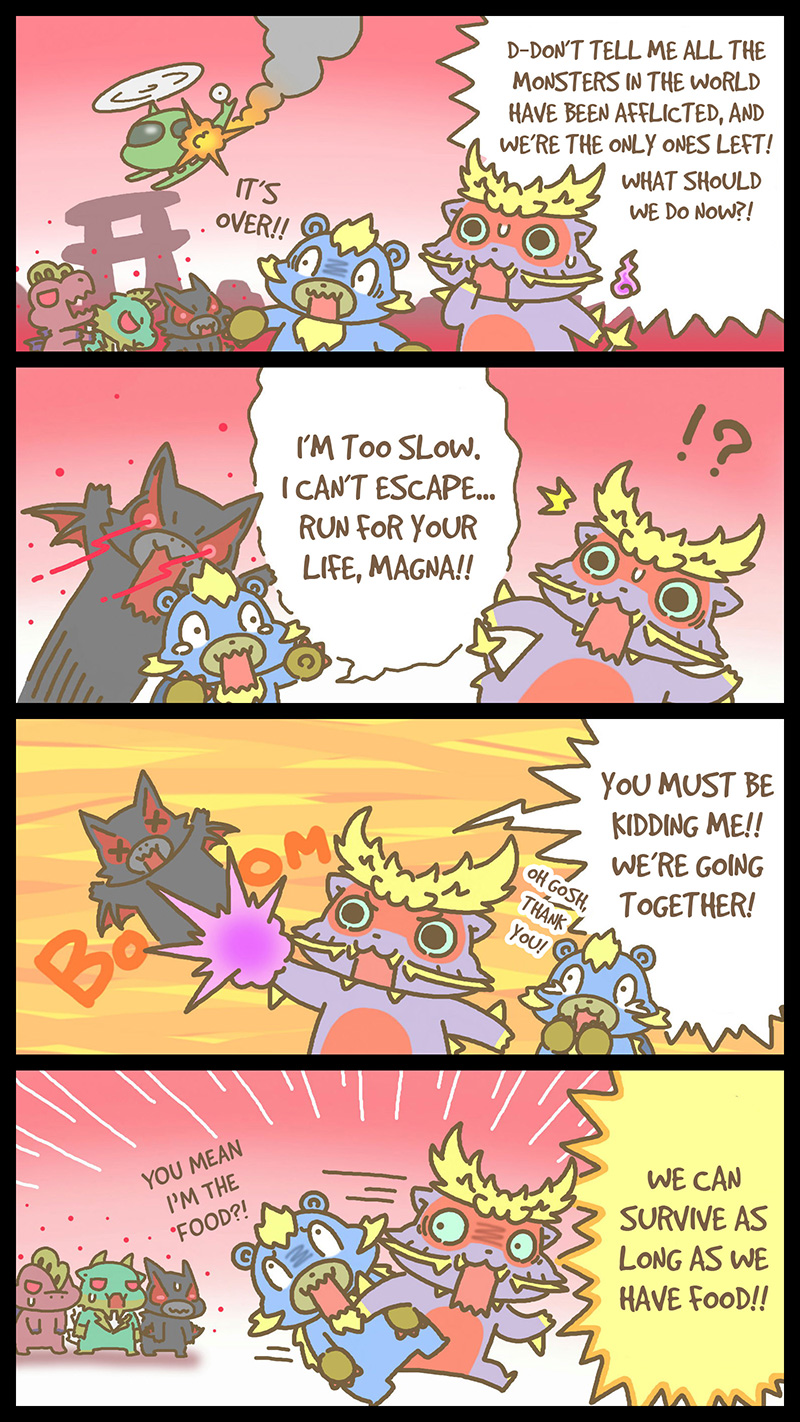 Well, check out her new comic ”Monster Hunter Friends ☆”, now serializing on the official MH Fanclub in Japan, “Monhun-bu”, and officially translated here at Monster Hunter Asia!