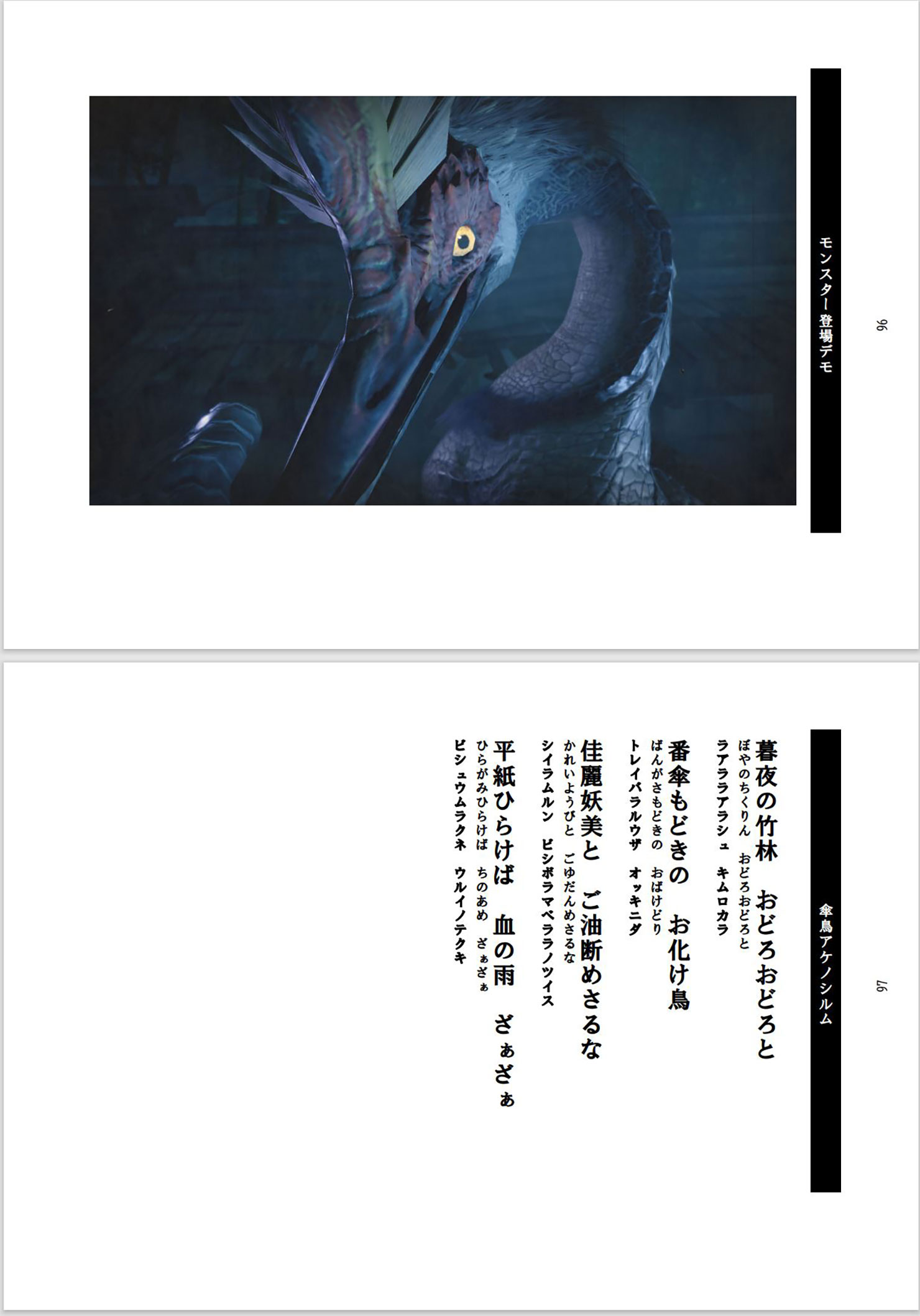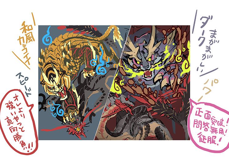 A4: It depends on the game. In regards to Rise and Sunbreak, well, Rise had a Japanese aesthetic and a Yokai motif, whereas Sunbreak had a Western aesthetic and a “western monster” motif, so I basically get this large framework of reference to work in from each game’s director, and then I start working on the basic flow of the story, while discussing the details with them.