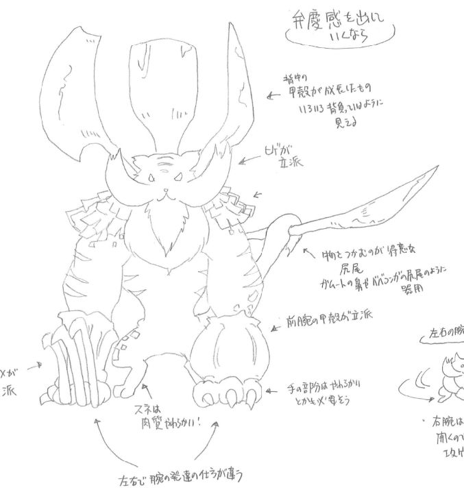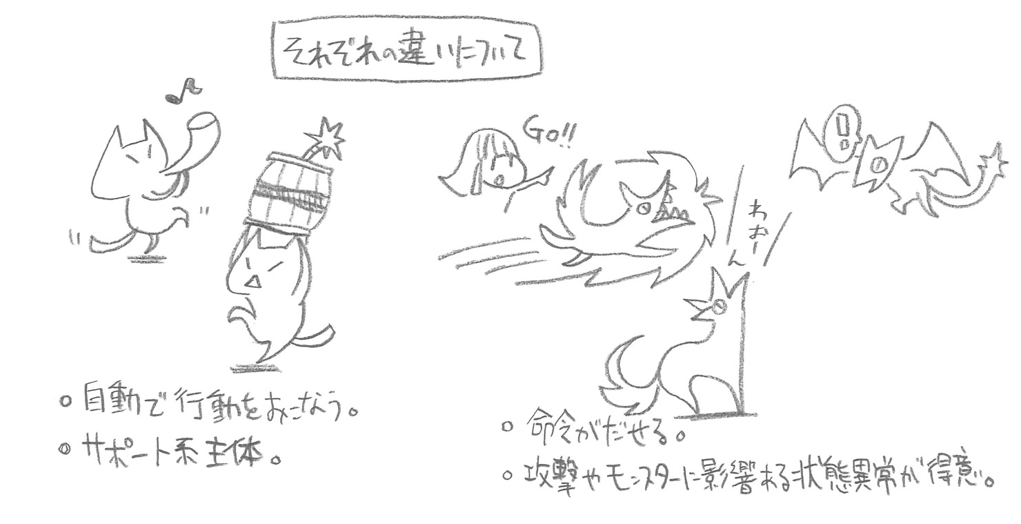 A4: This involves the world settings, so I’m going to pass this one along to Mr. Ichinose. Ichinose: “Part of it was that we wanted to separate Canynes from Felynes. By making them ‘fanged beasts’ instead, we were able to give them their own unique characteristics, like being able to ride them, etc.” ▼This is one of the first of Mr. Ichinose’s precious design ideas!