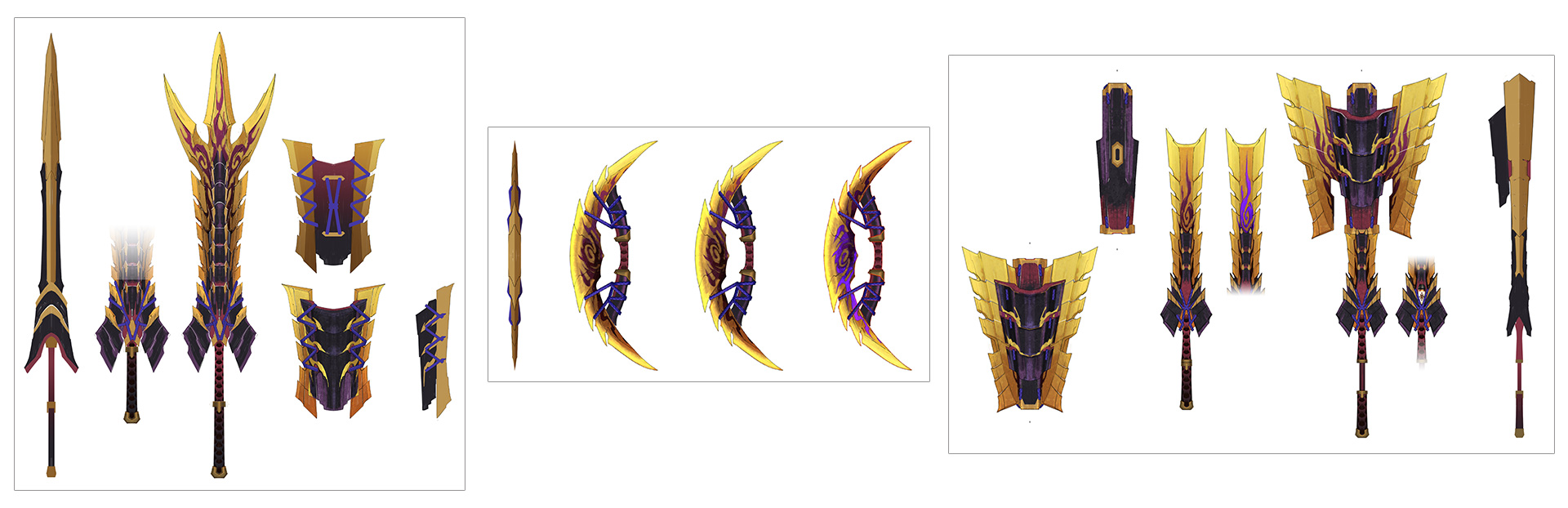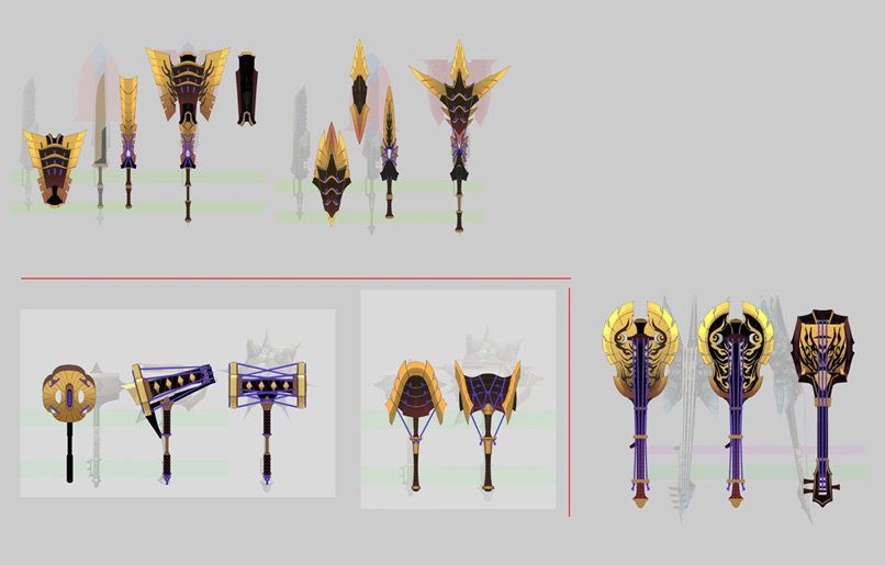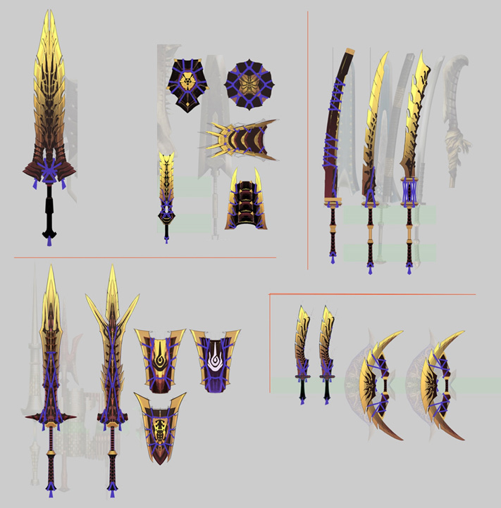 ▼Here are some of my favorite pieces of equipment that I modeled myself. There’s a Palico in there as well, and I remember having some ardent conversations with a veteran designer about how to make the silhouette look cute and cool at the same time, haha.