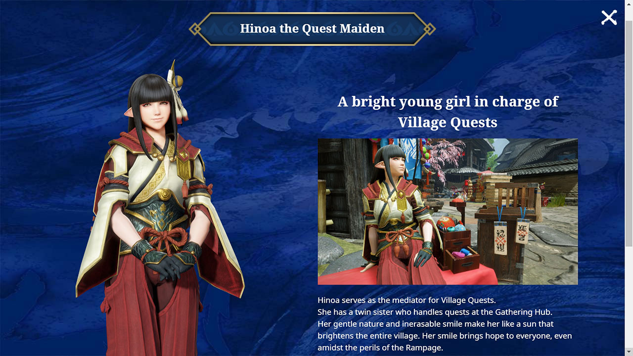 A7: I hope you enjoyed the story in Monster Hunter Rise and Monster Hunter Rise: Sunbreak! The biggest motivation to cross the finish line was, without a doubt, the fact that all of our fans showed their love and appreciation for the characters and the story on social media. The reason I wrote those short stories on Twitter is also because I wanted the fans to get even more out of the story, and to thank you for motivating me. I really cannot thank you enough! The sun has set on the story of the Fierce Flame, but there’s no end to the path a hunter walks. I hope that you will continue to visit Kamura Village and Elgado Outpost until the curtains open on a brand new story!