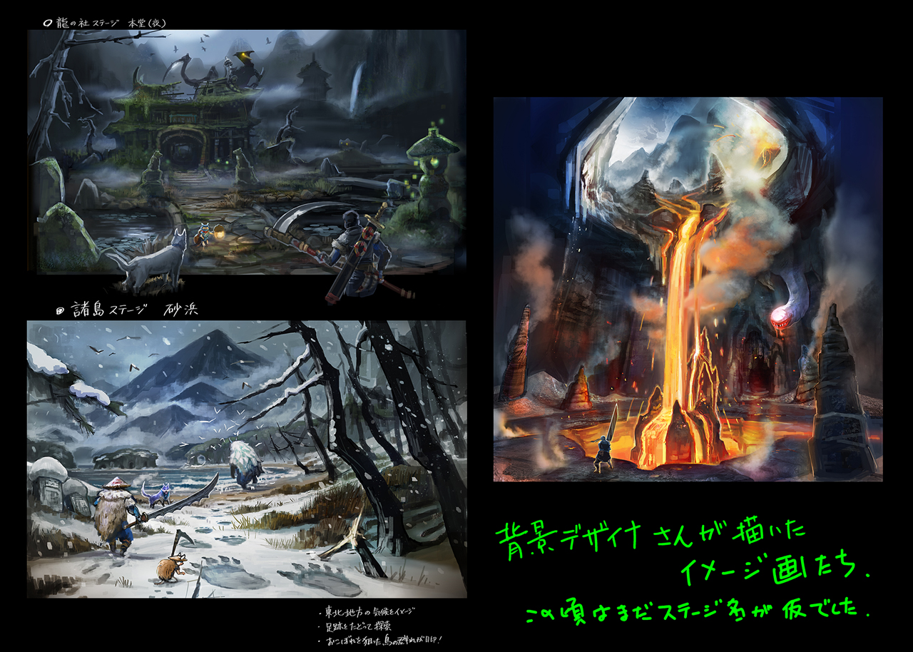 A3. Tanaka: Yes, in order to make the new stages, like the Shrine Ruins, feel as realistic as possible, we went out and did field recordings in a variety of places. The songs of birds, the chirping of cicadas, ambient noise in caves, the bells of a temple, and lots and lots of other sounds. We’ve put a lot of “real sounds” into the game like that. As a result, we’ve managed to create a soundscape that feels like a living, breathing ecology, which adds to the realism, I think.