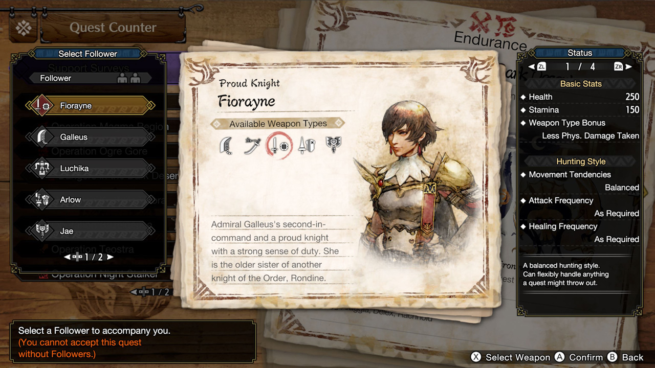 But in the game, the quest list says that an Espinas will appear after Fiorayne is injured, so I figured “the hunter will need to gather Espinas materials to create the medicine for Fiorayne,” or “Espinas has a very potent venom, so maybe we can use it as an antidote for whatever took Fiorayne out,” fight fire with fire, so to speak.