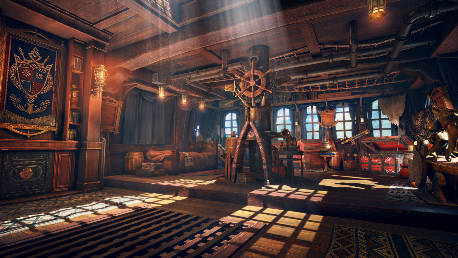 A5: Elgado’s theme started out as a “kingdom-like base.” It was built around the crater that ties into the story, and it was made a sort of royal fortress on the land that wasn’t swallowed into the hole. The setting for the kingdom was of a culturally advanced country with access to advanced technology, so we created some background elements like steam-based technology to add flavor. I was also very particular about including some platforming elements. There are lots of interesting sight-seeing spots, like the Cohoot owlets, and watching down on the crater from the top of the large crane that you can reach by climbing the fortress. There’s also a trolley driving around the outpost like a sort of roller coaster. If you haven’t checked it out yet, you should really give it a look as it moves around, especially near the Tea Shop. We also put the various facilities closer to each other to improve usability. There’s a lot more elements crammed into one space than I originally expected, so I was really worried if the performance was going to remain stable… Again, and I feel like a broken record here, but we were able to get everything to work thanks to the environment staff and all staff members from other departments as well. I cannot thank them enough!