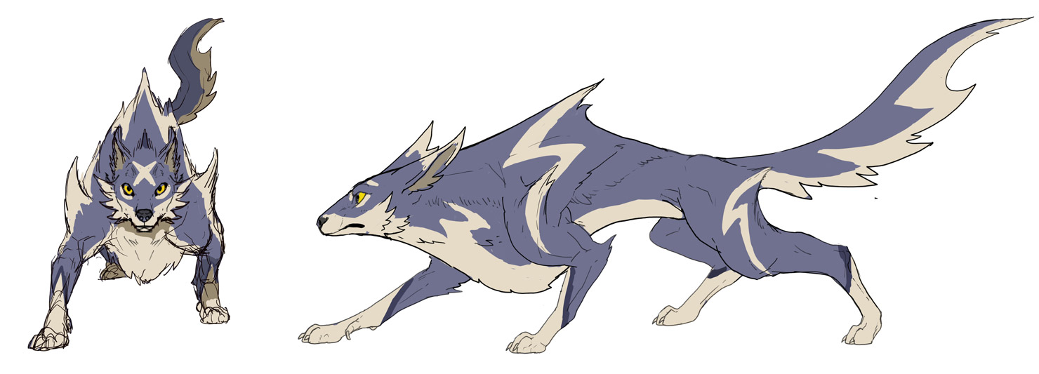 A3: I asked one of our veteran modelers to do the actual modeling for the Canynes, and they paid attention to every little detail I asked for. For instance, I asked them to base the musculature not on a wolf, but on a Saluki, which is a type of hunting dog. On the other hand, since the player is going to spend a lot of time riding it anyway, it shouldn’t be too detailed either, and they found the perfect balance. If you look at it from a distance, the silhouette looks supple, like ‘cheek hair,’ and if you look at it from behind you can see the soles of its paws. We actually made a variety of different designs for the underside of the paws, based on what kind of equipment it’s wearing, so you should try having a look for yourself! And of course, both the fans and the devs alike were very excited about being able to interact with the Palamute! Everyone, including Mr. Ichinose the Director, had lots of ideas from the start of development, so when we were finally able to implement it, everyone was super motivated! I remember talking to a lot of people from a variety of sections, and they didn’t just want to be able to pet it, they wanted to be able to rub its belly as well! ▼An early design idea of Mr. Ichinose.