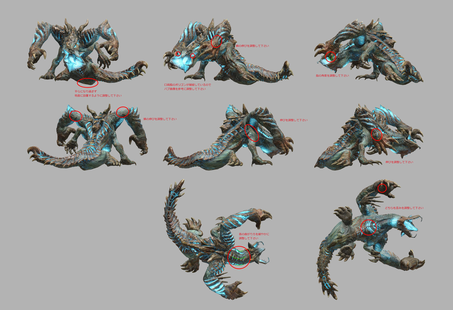 A3: The process for making monster animations is to first get a design doc from the game designers that contains info on what kind of gameplay they envision and what type of attacks they want to make. Based on that design doc and the character image of the monster, we start making temp animations. These temp animations are used to test the gameplay, and give a visual impression of the monster’s motions, its characteristics, and its uniqueness, which need to be vetted by the game director and the art director. When we get the OK, we start tweaking the animations in the game, alongside the game design and the VFX, which sometimes involves making modifications to improve the quality. Once the gameplay and visuals are hammered out, we go into the final brush-up phase, and then the animations are done!